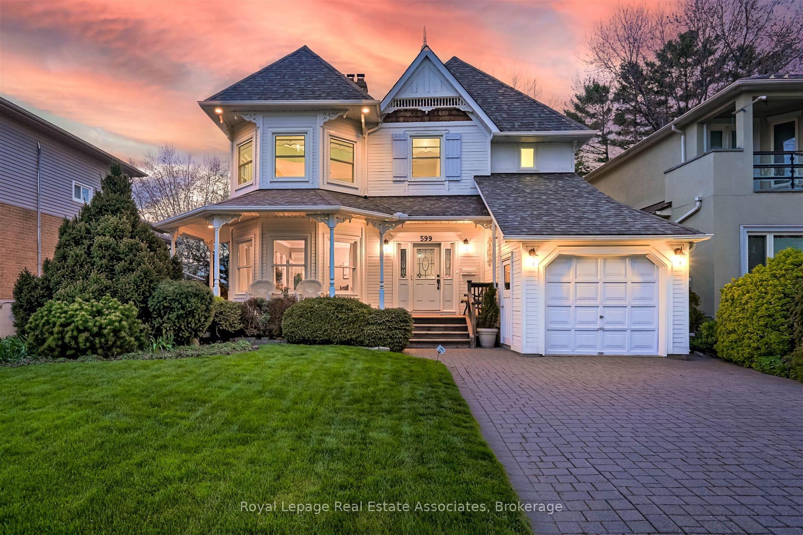 Victorian Elegance Overlooking Lake Ontario Steps to the Beach, Yacht Club, and Lakefront Promenade. Welcome to this extraordinary David Small-designed Victorian home, offering sweeping views of Lake Ontario and a lifestyle of unparalleled convenience and charm. Just across the street from a pristine sandy beach and mere steps from the scenic lakefront promenade, this home beautifully marries classic Victorian architecture with modern luxury offering approximately 4700 sq.ft. of living space. Step inside to discover 9-foot ceilings on the main level, where an airy, sun-drenched open-concept layout provides the perfect setting for entertaining. The expansive kitchen flows effortlessly into a spacious great room with a cozy gas fireplace ideal for family gatherings or intimate dinner parties. Enjoy your morning coffee or evening sunset views from the large wraparound terrace, where the lake serves as a stunning backdrop. Upstairs, you'll find three generously sized bedrooms, with the potential for a fourth, offering ample space for families or home offices. The expansive lower level offers a spacious recreation room, and a generous-sized games room with ample storage space. Keep it as is, or easily add an additional bedroom & bathroom. Outdoor enthusiasts will appreciate the proximity to the beach, where you can paddle board, canoe, or cycle, while the private backyard oasis, complete with a saltwater pool, and entertainment patio invites relaxation without ever having to leave home. Conveniently located just 20 minutes from downtown Toronto, the Port Credit GO Station, Pearson Airport, and world-class hospitals, this home makes commuting a breeze. Highly rated schools are nearby, including Alan A. Martin, Mentor College, Blyth Academy. Enjoy the added benefit of walking to trendy shops, restaurants, the Port Credit Yacht Club, and the historic Adamson Estate. This is more than just a home...its a lifestyle by the lake.