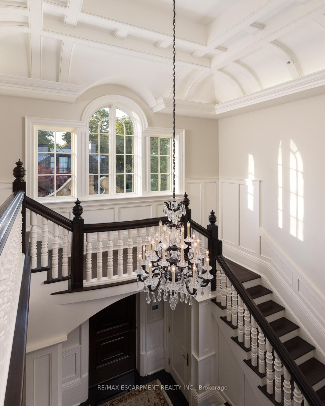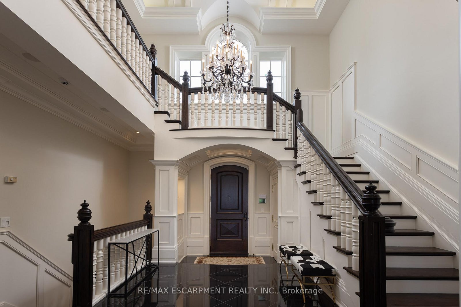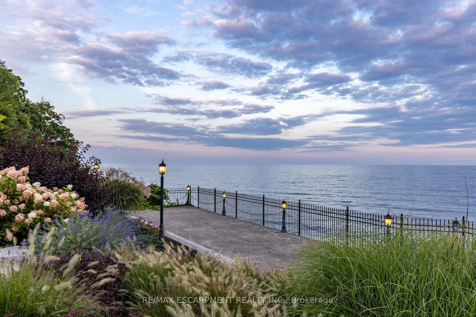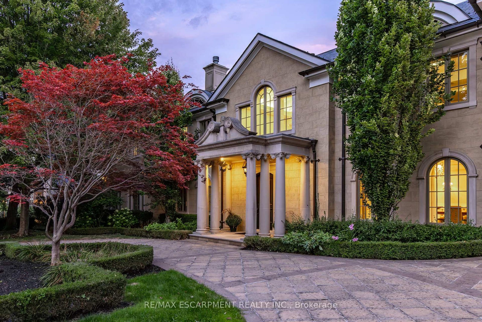 Commanding a prized stretch of Lake Ontario shoreline in prestigious South East Oakville, this Hicks-Pettes-designed estate defines European elegance and modern grandeur. A limestone façade with stone pillars, slate roof and copper detailing signal architectural pedigree of the highest order. Behind the gated, heated circular drive and stately covered porch, more than 14,000 sq. ft. of elevator-served luxury unfolds. From the moment you enter, panoramic lake vistas sweep across every principal room, creating an unforgettable backdrop for both intimate family life and grand entertaining. Radiant-heated marble floors and a soaring 22-foot illuminated barrel ceiling set a tone of sophisticated drama. Formal living and entertaining salons, each with hand-carved stone fireplaces, open to expansive lake-view terraces, while the sun-filled solarium captures year-round vistas of the tennis court and shimmering water beyond. A chefs kitchen with separate caterers prep area balances everyday ease with gala-scale hosting. Completing the main level, a richly paneled library provides a quiet, distinguished retreat for work or reflection. Five lavish bedroom suites each with private ensuite include a primary sanctuary with spa-inspired bath and private lake-view balcony. The lower level becomes a private club: temperature-controlled wine cellar and bar, theatre, banquet hall, gym, nanny suite and second laundry. Outdoors, French-inspired gardens, sound-equipped terraces and a full tennis court embrace the lakes breezes and golden sunsets. This is Oakvilles ultimate lakefront legacy residence - where unrivalled, world-class vistas from every principal room meet architectural mastery and resort-style amenities to create a property of true international calibre. Luxury Certified.