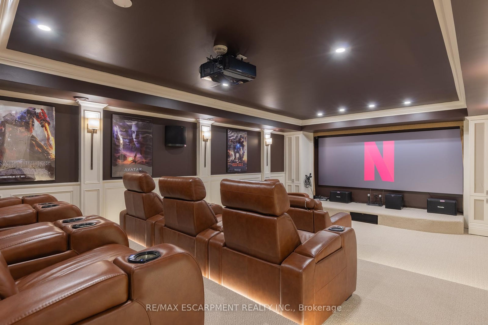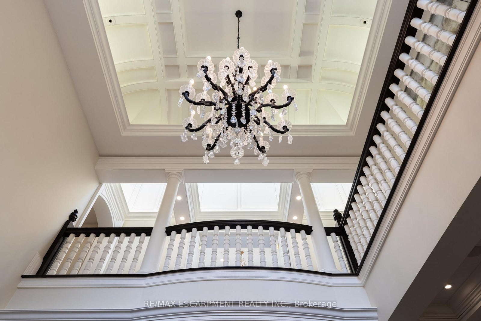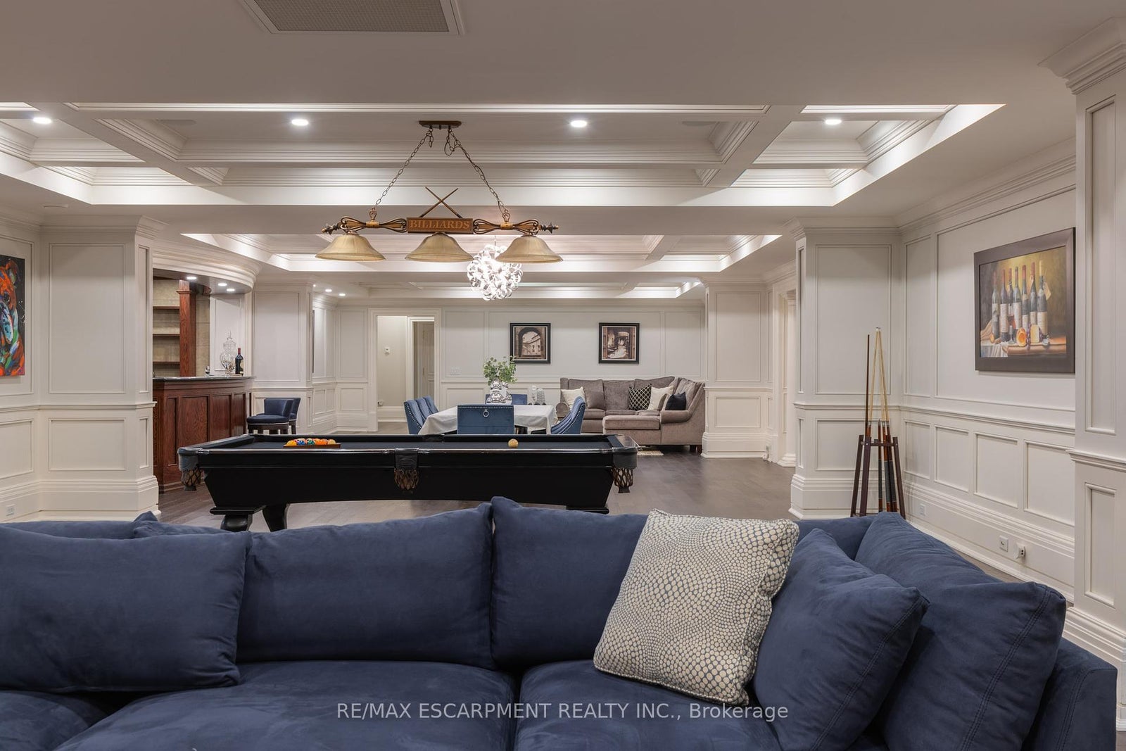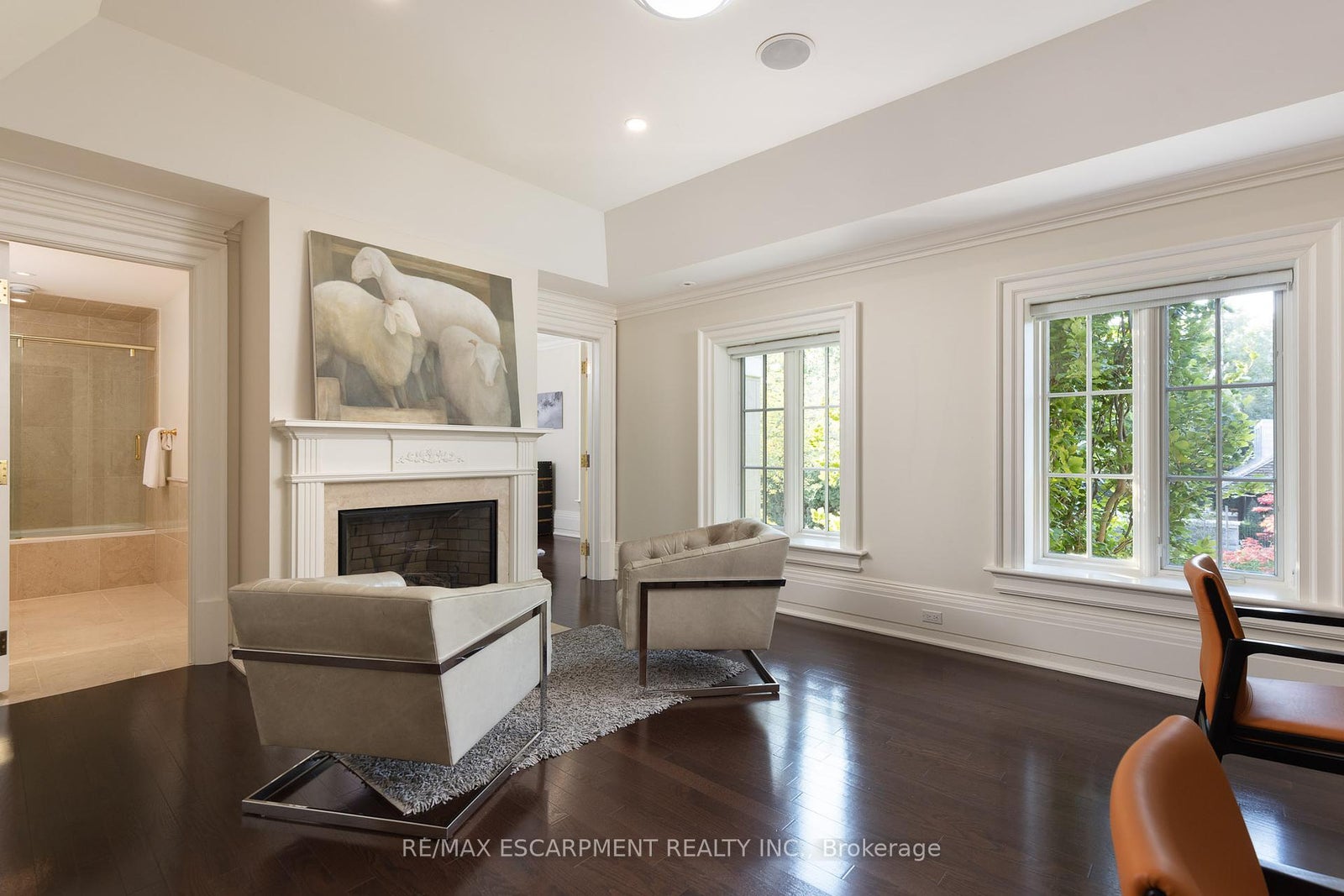 Commanding a prized stretch of Lake Ontario shoreline in prestigious South East Oakville, this Hicks-Pettes-designed estate defines European elegance and modern grandeur. A limestone façade with stone pillars, slate roof and copper detailing signal architectural pedigree of the highest order. Behind the gated, heated circular drive and stately covered porch, more than 14,000 sq. ft. of elevator-served luxury unfolds. From the moment you enter, panoramic lake vistas sweep across every principal room, creating an unforgettable backdrop for both intimate family life and grand entertaining. Radiant-heated marble floors and a soaring 22-foot illuminated barrel ceiling set a tone of sophisticated drama. Formal living and entertaining salons, each with hand-carved stone fireplaces, open to expansive lake-view terraces, while the sun-filled solarium captures year-round vistas of the tennis court and shimmering water beyond. A chefs kitchen with separate caterers prep area balances everyday ease with gala-scale hosting. Completing the main level, a richly paneled library provides a quiet, distinguished retreat for work or reflection. Five lavish bedroom suites each with private ensuite include a primary sanctuary with spa-inspired bath and private lake-view balcony. The lower level becomes a private club: temperature-controlled wine cellar and bar, theatre, banquet hall, gym, nanny suite and second laundry. Outdoors, French-inspired gardens, sound-equipped terraces and a full tennis court embrace the lakes breezes and golden sunsets. This is Oakvilles ultimate lakefront legacy residence - where unrivalled, world-class vistas from every principal room meet architectural mastery and resort-style amenities to create a property of true international calibre. Luxury Certified.