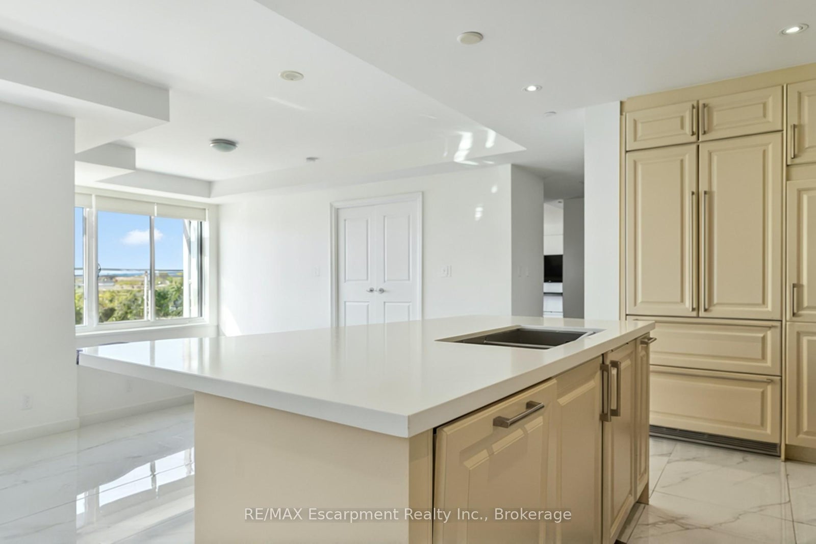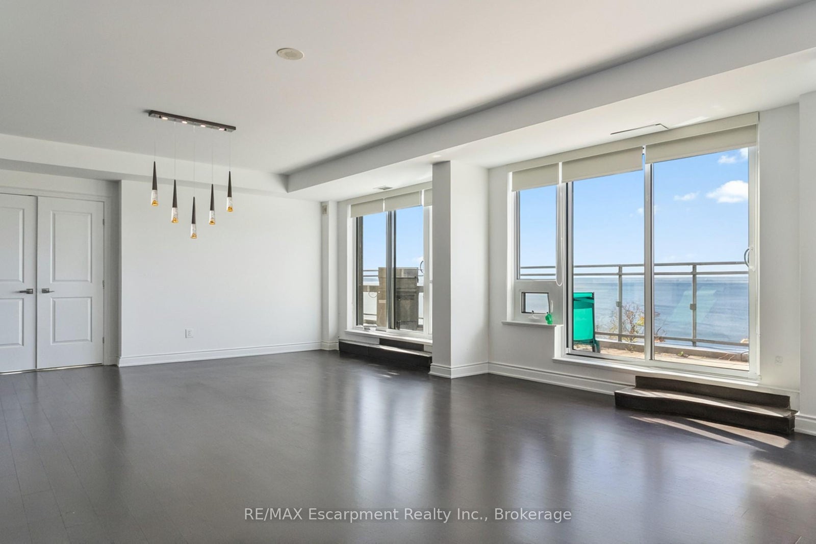 Elevate your lifestyle to unprecedented heights in this exquisite penthouse sanctuary, where sophisticated urban living meets breathtaking natural splendor. This remarkable three-bedroom, three-and-a-half-bathroom residence spans an impressive 2,708 square feet of meticulously crafted living space, designed for the most discerning homeowner. The southwest-facing orientation bathes the interior in golden light while showcasing panoramic vistas of the majestic escarpment and the endless expanse of Lake Ontario. The open-concept kitchen, adorned with lustrous new porcelain tile, features a striking island that serves as the culinary centerpiece, seamlessly connecting to the breakfast nook and intimate sitting area - perfect orchestration of form and function. The thoughtfully designed split floor plan ensures privacy, with the primary bedroom suite positioned away from guest accommodations. Guest suites boast their own private ensuite and generous walk-in closets, creating a personal retreat. Throughout the residence, rich hardwood flooring adds warmth and timeless elegance. Step onto the spectacular wrap-around balcony accessible through multiple walkouts, complete with a BBQ gas line for personal grilling. The building exemplifies luxury living with resort-style amenities including a sparkling pool, tranquil sitting areas, fully equipped fitness center, rejuvenating whirlpool, sophisticated social lounge, and convenient guest suite. This penthouse represents the pinnacle of Oakville living, where every sunrise and sunset promises new possibilities.