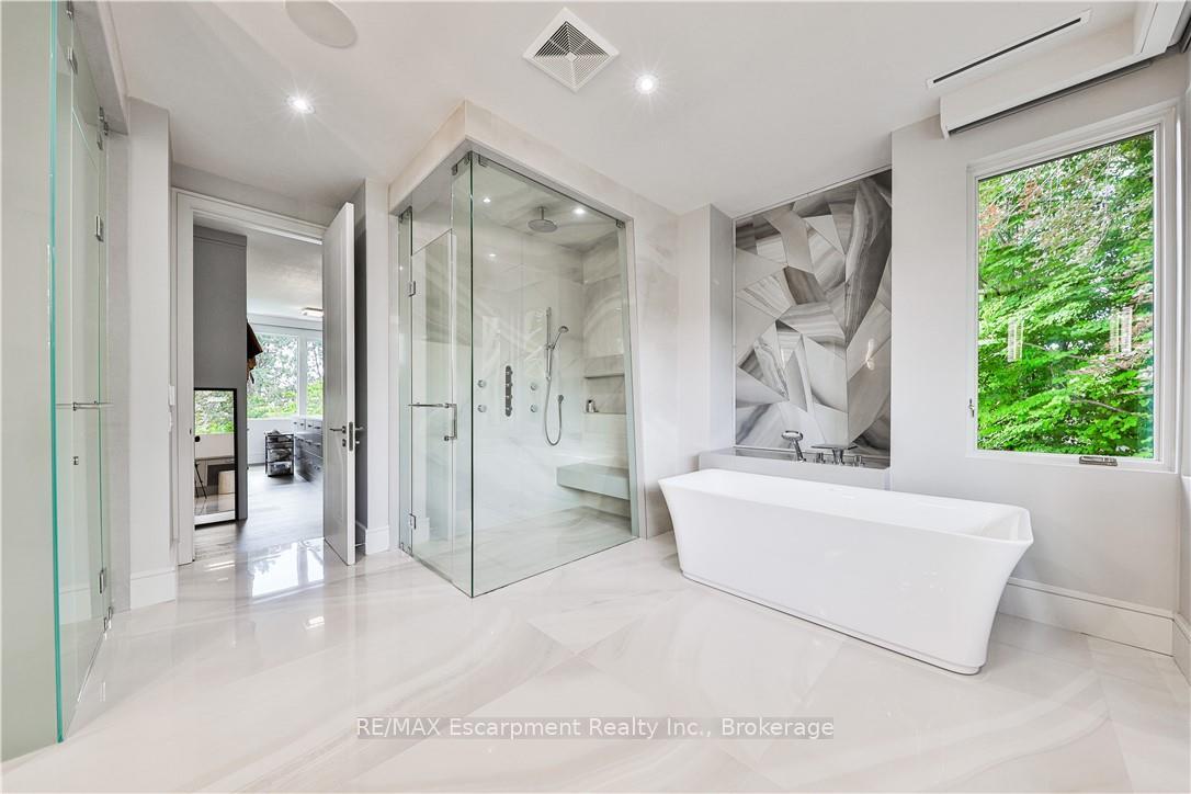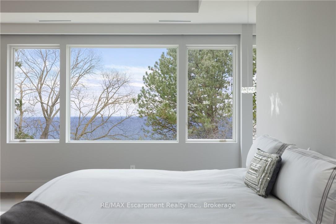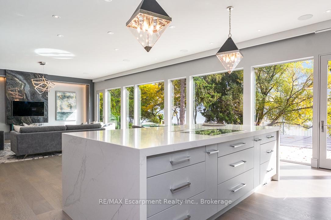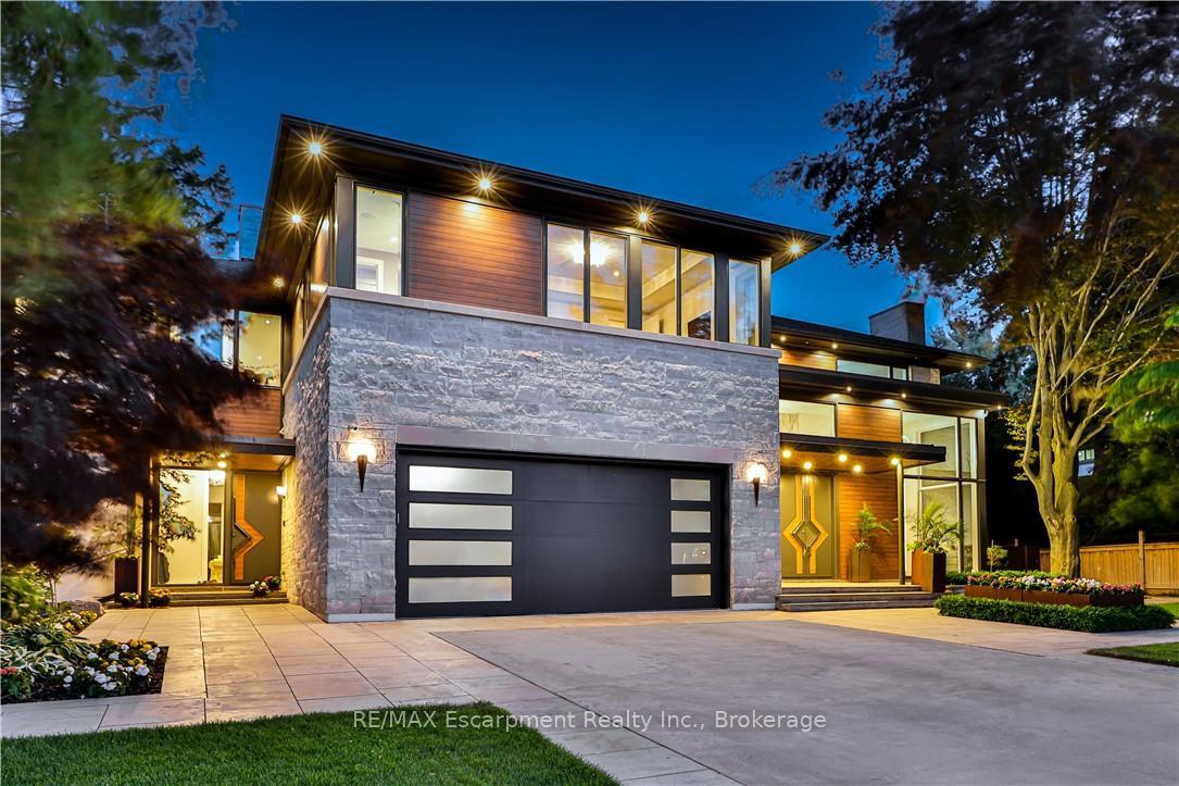Designed to capture panoramic water views - Waterfront luxury awaits at 2250 Chancery Lane W. On exclusive SE Oakville enclave, this modern masterpiece offers 9,177 sf w/5 bdrms & 7 baths. Bright & airy w/ soaring 10ft ceilings on every level & vast windows. Chef's kitchen w/ modern cabinetry, quartz countertops & slab backsplash & top-of-the-line Gaggenau B/I appliances. All living & entertaining spaces are generously proportioned, offer lake vistas & lux finishes such as suspended slab fireplaces, designer lighting & integrated storage to maintain a sleek aesthetic. Multiple walkouts lead to natural stone terrace & infinity pool. MF office. Upstairs - Primary retreat, w/spa-like ensuite & Lake views. 3 add'l bdrms, each w/ensuite, & a laundry rm. Lower Level-Automated theatre, golf simulator, rec/games room w/wet bar; 5th bedroom, exercise room, wine wall, 2 full bathrooms, & walk-up to yard. 3-level elevator, heated tiled floors & full home automation. LUXURY CERTIFIED.