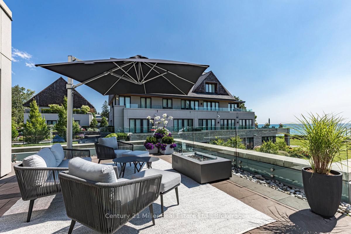 Elegant Lakeside Living in Oakville's Most Exclusive Community. An exquisite luxury residence nestled in one of Oakville's most prestigious enclaves just steps from the lake. This rare offering presents sophisticated single-level living in a boutique community, where timeless architecture meets contemporary comfort. Spanning over 3,000 square feet, this 2-bedroom, 2.5-bath suite offers refined elegance and privacy, featuring soaring ceilings, wide-plank hardwood floors, and oversized windows that flood the space with natural light. The open-concept layout is designed for upscale entertaining and easy everyday living. The gourmet kitchen is a chefs dream, appointed with premium appliances, quartz countertops, custom cabinetry, and a generous island that anchors the heart of the home. The dining and living areas flow seamlessly, complete with a gas fireplace, elegant millwork, and a walkout to a private 1,300+ square foot terrace perfect for morning coffee or evening cocktails. Retreat to the spacious primary suite, showcasing his and her closets as well as a large walk-in closet and a lavish 5-piece ensuite with double vanities, a soaker tub, and a glass-enclosed shower. A well-appointed second bedroom with its own ensuite provides comfort for guests or family. Enjoy direct elevator access to your private vestibule, leading to a two-car garage and dedicated storage room, a rare convenience that enhances the ease of condominium living. This exclusive lakeside community offers a tranquil lifestyle just minutes from downtown Oakville, the marina, waterfront trails, fine dining, and world-class amenities. A refined opportunity for the discerning buyer seeking turnkey luxury in South East Oakville.